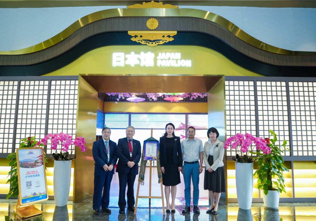 來到日本館,濃郁的日式風(fēng)情撲面而來,代表團紛紛駐足拍照留念。作為匯聚中心獨具特色的四季主題館,日本館以“季節(jié)流轉(zhuǎn)”為設(shè)計主線,巧妙融合了日本傳統(tǒng)建筑美學(xué)與現(xiàn)代展示技術(shù),加之結(jié)合浮世繪的意境、茶道的禪意、花道的雅致,打造出移步換景的沉浸式體驗空間,讓訪客在有限的空間內(nèi)領(lǐng)略到日本文化的精髓。