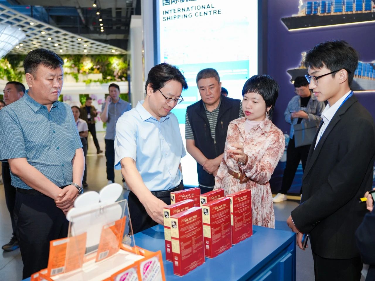 在匯聚中心,調(diào)研組深入了解項目創(chuàng)新發(fā)展理念與運營模式,就商品的入駐流程、銷售模式等問題進行了交流。調(diào)研組充分肯定了匯聚中心所呈現(xiàn)的蓬勃商貿(mào)活力及創(chuàng)新成果,并表示項目通過線上數(shù)字化平臺+線下展館沉浸式商貿(mào)體驗相結(jié)合的新穎模式,為中國與東盟國家的企業(yè)搭建了雙向賦能平臺,能有效提升雙方的貿(mào)易便利化水平。